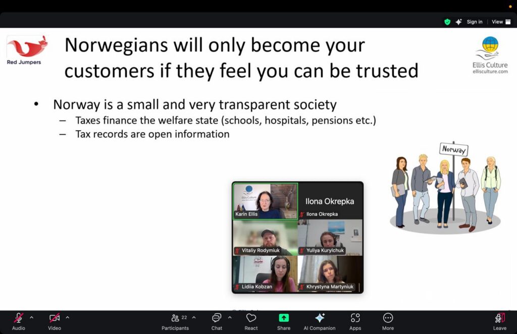 Following the success of our Swedish webinar, we continued our Scandinavian journey with another insightful session – this time focused on Norway. Together with Karin Ellis, an intercultural trainer and author of Working with Norwegians, we explored efficient ways to communicate, negotiate, and build trust with Norwegian partners.